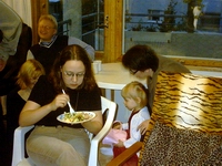 Marjutin opiskelukaveri Kirsi ja hänen miehensä Tomi sekä heidän poikansa Tuomas sekä Jussin opiskelu- ja työkaverin Hannun vaimo Terhi ja heidän tyttärensä Aino. (Missähän Hannu on?)