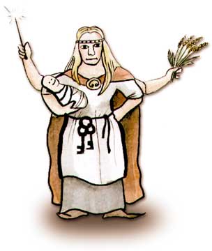 Naispuolisia mytologisia hahmoja olivat Nornit - Urðr ("Se, mikä on "), Verðandi ("Se, joka tapahtuu") ja Skuld ("Se, jonka pitäisi tapahtua") - jotka kokoontuivat lapsen kehdon ääreen ja määräsivät hänen kohtalonsa. Odinilla ja Freijalla oli molemmilla naispuolisia valkyyrioita, jotka valitsivat taistelussa kaatuneista urheimmat, jotka pääsivät joko Valhallaan tai Freijan luokse Folkvangiin. Hedelmällisyyden jumalan Frein sisar Freija puolestaan oli rakkauden jumalatar.