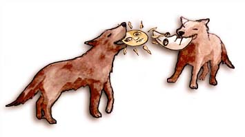 Kaksi sutta syövät auringon ja kuun ja maailma peittyy pimeyteen.